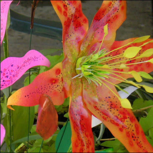 Lirios son divertidos un son muy dramático en la forma y el color! El gran lilly es corte de papel de impresión de ordenador pintado acrílico. Mira de cerca y se pueden ver algunos datos impresos!