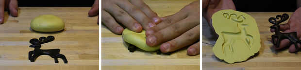 La masilla viene en dos partes laterales "A" y el lado "B"; un lado es de color amarillo y blanco del otro lado. Tomar uno de los lados y pretender cubrir la mitad de su maestro. No hay necesidad para presionar, simplemente colóquelo sobre para que usted obtenga un volumen aproximado de masilla. Preste especial atención a los altos puntos en su maestro. Por ejemplo, en nuestro Reno, una de las patas sobresale más que los otros. Es esencial que hay suficiente material para cubrir los altos puntos del maestro para que el molde sea el espesor correcto. Cuando tienes media el maestro cubierto, rollo la masilla en forma de bola. La proporción de mezcla de la masilla es de 1:1 por peso o volumen. Medir una cantidad igual de masilla del otro lado. Si usted quiere ser preciso, puede utilizar una escala de gramo. Sin embargo, es posible lograr la combinación adecuada simplemente echando un vistazo cantidades iguales de ambos colores.