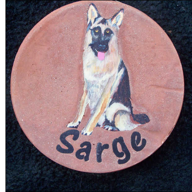 subió con este método para incrustar mascotas retratos en concreto. Es una manera de hacer una permanente obra de arte para mostrar que tú le quieras colocarlo.  He tenido Letras de acrílico y pinturas sobreviven durante varios años al aire libre y con un poco de cuidado, deben durar 10 años o más.