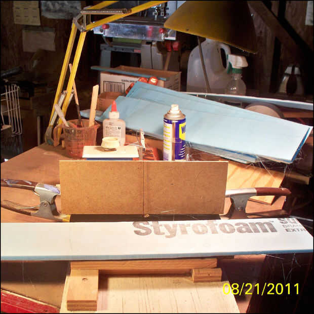 En primer lugar necesitaba cortar algunos poliestireno al tamaño deseado. Usé la máquina de hotwire para cortar la espuma a cerca de 1/4 pulgada. Letras para el nombre y el retrato se pueden cortar de esta pieza. Para obtener instrucciones completas sobre Letras de espuma de poliestireno, vea mi instructable: