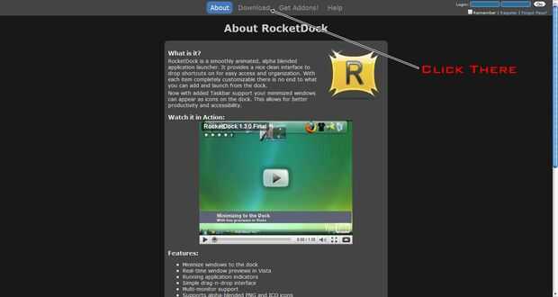 Primero de toda necesidad de Heuy Rocketdock - rocketdock.com/cuando estás en el clic del sitio la descarga (marcado en la imagen)