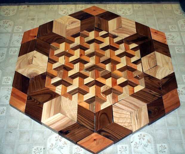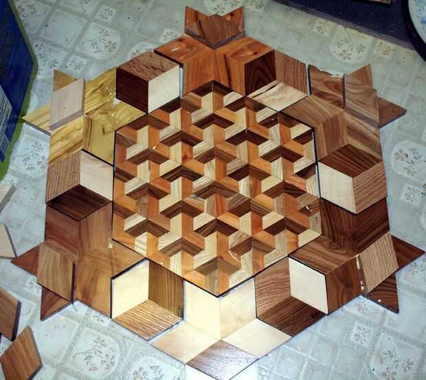 Pegar la frontera resultó para ser mucho más difícil de lo que pensaba. A todo a que utiliza una ranura en una mesa de fresadora y corte una muesca todo el camino alrededor de la pieza interior. Luego corté una muesca en cada pieza de rombo para emparejar para arriba. Usé mis jigs pegar y armar la frontera unas piezas a la vez hasta que tuve sólo 3 partes principales. Asombroso realmente encajan entre sí forman la frontera y alrededor del centro, casi. Tuve que usar un archivo para hacer un ajuste fino y en algunos lugares tuve que cortar algunas astillas para rellenar huecos pequeños. Fue mucho trabajo pero yo estaba feliz con el resultado final. El encolado final se llevó a cabo junto con abrazaderas de tubo y los bordes también se sujetaron a las tuberías para mantener todo con ninguna inclinación.