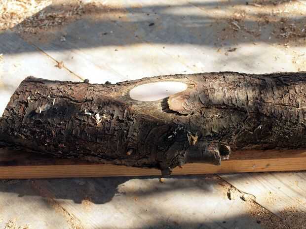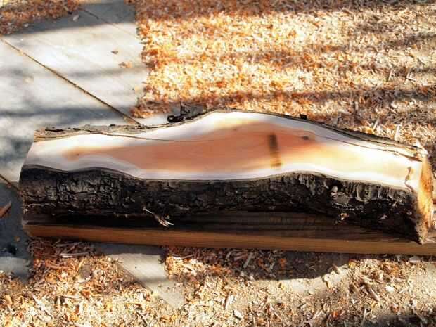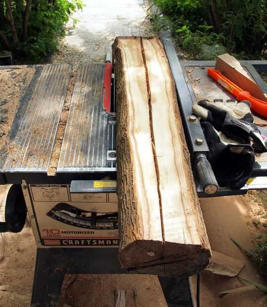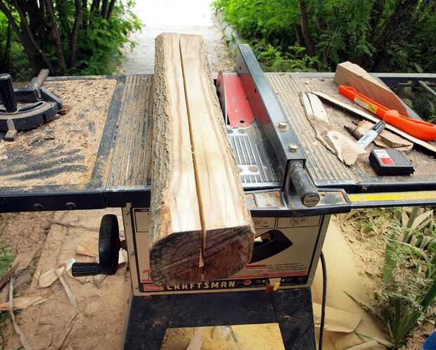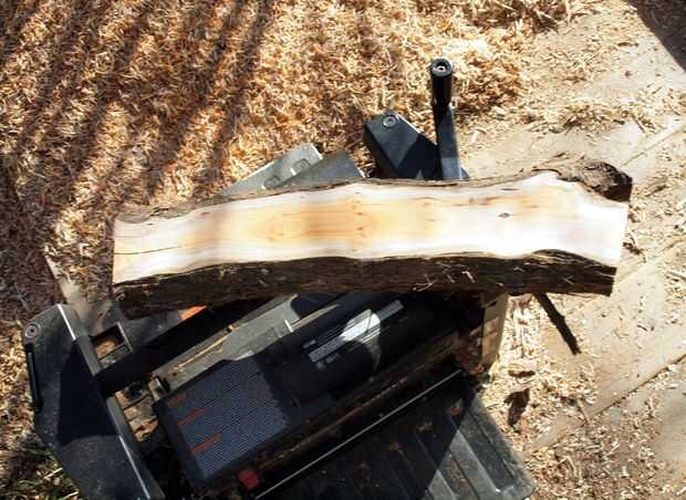 Para el plano de una pequeña rama que rueda alrededor de usted puede atornillar un 2 x 4 a la parte inferior para mantenerla firme mientras se pasa por la cepilladora. Una vez que tenga una cara plana puede quitar el 2 x 4 y plano ese lado por lo que tiene 2 caras planas paralelas.