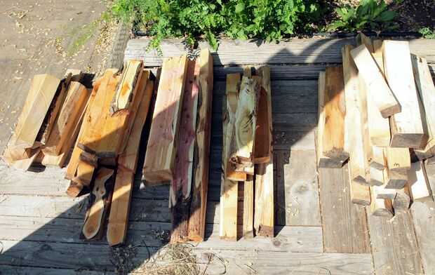En mi proyecto original planta comencé con mi madera de mis árboles. Para conseguir todas las variedades de madera que quería para este proyecto empecé igual ya que muchos de estos bosques no están disponibles a menos que te DIY. Algunos de los bosques son de árboles autóctonos y algunos son de otras partes del país, que un amigo mío ha traído a mí para tratar de trabajar con. El roble que vino con unos palets roble sólidas grandes, que es la madera sólo dimensional que se utilizó en este proyecto. Porque he decidido ir con 3/4 de pulgada en vez de 1 pulgada pude utilizar pequeñas ramas que hice anteriormente. Otra vez la más llana desempeñó un papel muy importante.