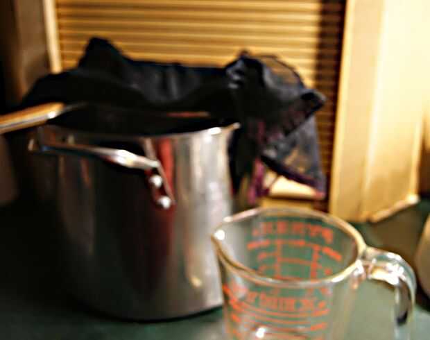 En tercer lugar, enjuague la mezcla de ruibarbo con agua filtrada todo el azúcar que se puede salir. La forma más sencilla de hacerlo es poner la mezcla de ruibarbo en el contenedor vacío y añadirle un cuarto de galón de agua filtrada. Colar y repetir. Ahora apriete qué líquido se puede partir de la mezcla de ruibarbo en su paño filtrando.