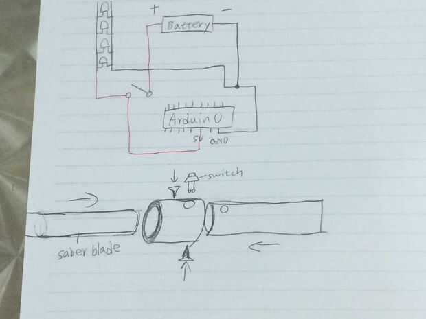 Finalmente, el último paso es montar. Recuerde que la cuchilla fija en el puño por el tornillo si no lo que la hoja podría volar mientras usted juega. También tenga cuidado con los cables, es muy delicado sobre todo cuando le montaje, si los cables rompieron le tendrá que soldar otra vez.