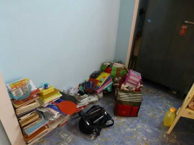 La cuna de acero ha tomado la mayoría del espacio en la habitación... los libros y las cosas estaban tumbados en el suelo por falta de espacio de almacenamiento.