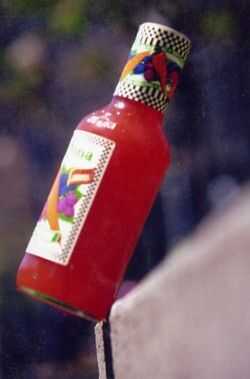 Es un truco muy común de química para hacer sangre falsa. Los gradientes que se necesita son:1. tiocianato de potasio 2.5g + 50ml de agua2. 2.5g cloruro férrico (hierro (III) cloruro) + 50ml de aguaTiocianato de potasio es toxic.however diferente de