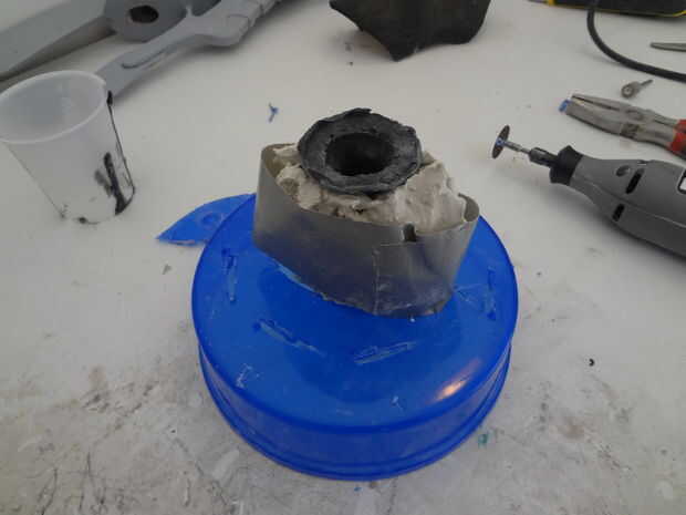 Una vez que ha hecho un molde de unos 4mm de espesor, que entonces necesitas hacer un molde de madre 2 parte para asegurarse de que no se estira al hacer su casting, utilicé yeso de París como este para no ser un casting de lujo.