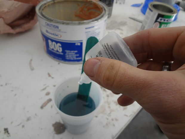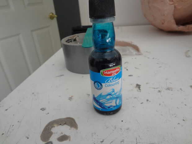 Una vez mezclado, añadiendo simplemente arte azul tinte o alimento colorante le puede colorear su elenco, usé unas 5 gotas de colorante azul para los míos.