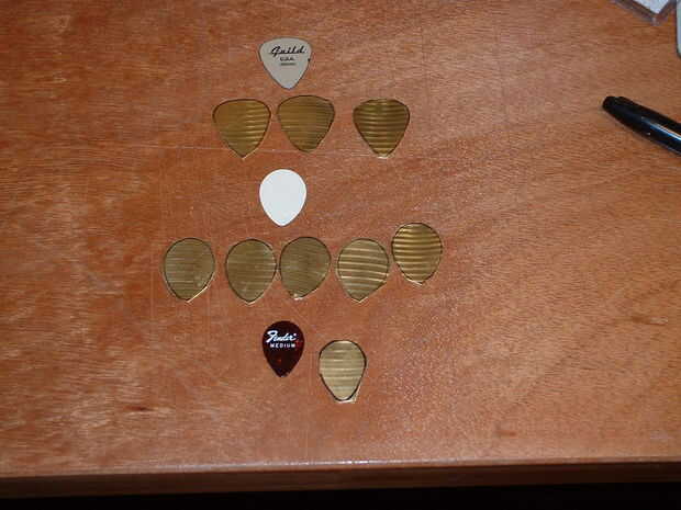 en este instructable mal enseñarle a hacer sus propias selecciones de la guitarra de regalo o tarjetas de créditoahora no tienes que conducir sobre a tu tienda de música sólo para conseguir frigging selecciones!barato, fácil y rápidono ha inventado e