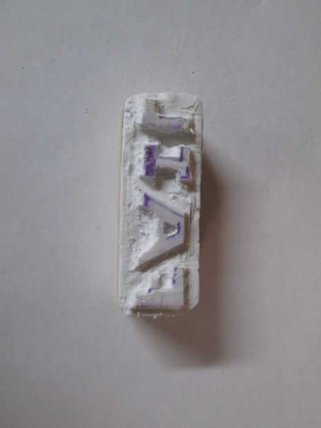 Esto puede hacerse añadiendo un mango. Para permitir que el pegamento se adhiera a la pieza de sello, usé una Dremel a añadir ranuras a lo largo de la parte posterior. Esto creará más superficie, y se destaca en la pluma porque sería difícil ver en cámara. Después de encolar el mango, (que en forma y alisado) el exceso de pegamento caliente que fue exprimido hacia fuera fue Dremeled. Luego usé la Dremel algunos más para hacer el tamaño y la forma de la estampilla para que coincida con el tamaño y forma del mango lo más cerca posible. Como se puede ver en la segunda foto, he hecho ellos tanto hasta el punto donde la única razón por qué puedes ver ligeramente el mango desde ese ángulo es porque la cámara no era exactamente por encima de él.