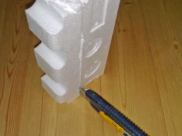 Utilizando un cúter o un cuchillo afilado, corte con cuidado la espuma de poliestireno a la medida. Asegurarse de que el lado que será la forma de espuma es completamente plano.