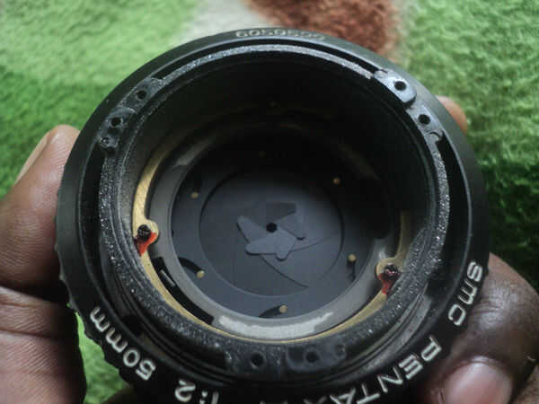 campana de lente de 50mm con apertura después de quitar todo el elemento de lente.