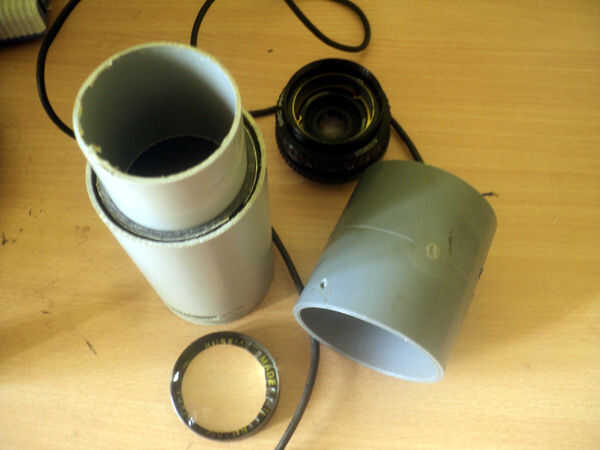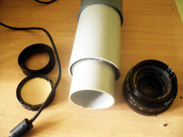 2. tomar un tubo de 60mm, fijar su empalme en el extremo posterior y fijar el 50 mm conjunto interior en el otro extremo. La longitud de la tubería de 60mm debe mantener según la longitud focal del lente que usted haya seleccionado.