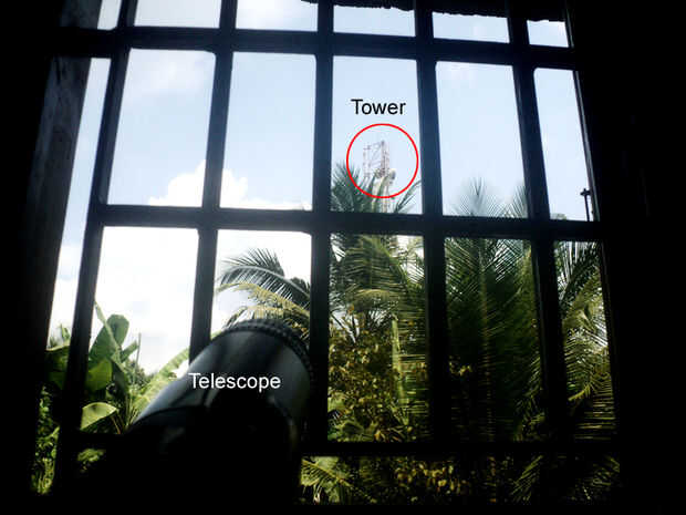 La distancia entre el telescopio y la torre es de alrededor de 200-250 mtrs.