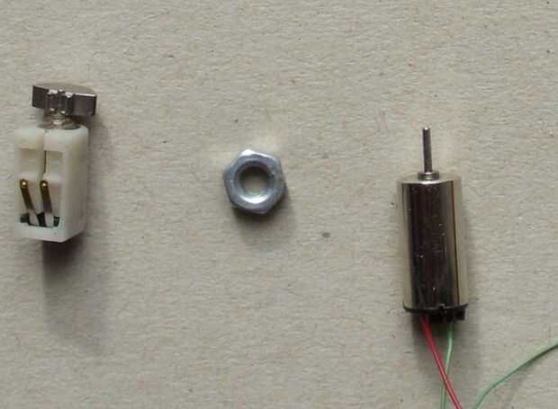 1) un zumbador de teléfono móvil o un micro motor de mini helicóptero y mitad de tuerca M2 o M3
