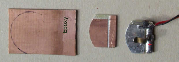 2) cortar la placa de epoxi y hacer la separación de la + y - con una hoja de