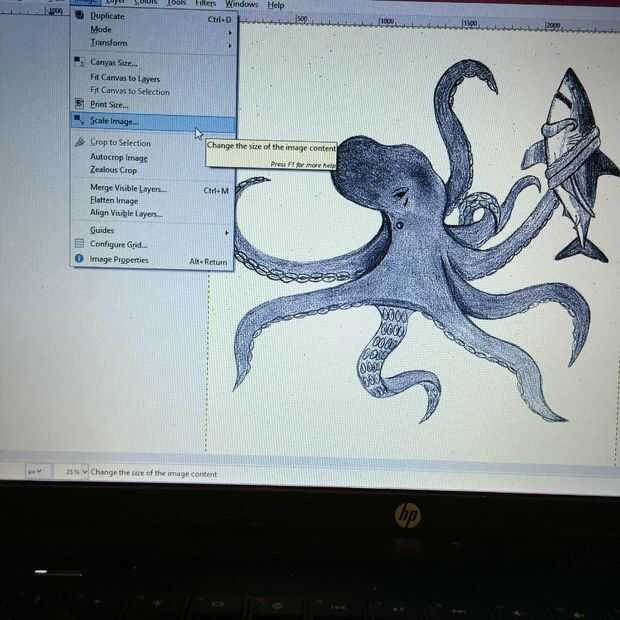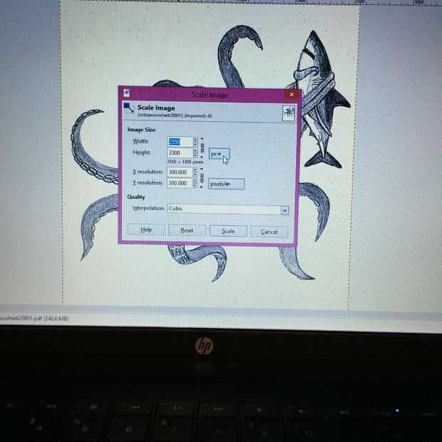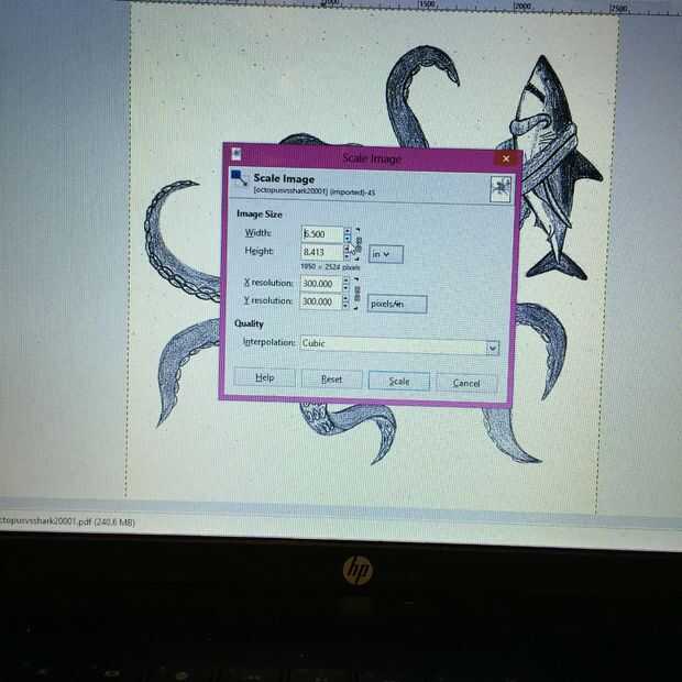 - Ahora se escala la imagen al tamaño que desea. Quería ser un poco más pequeño para una camisa de niño. Ir a imagen y seleccione escala. Cambié a pulgadas y reducido para que quepa.