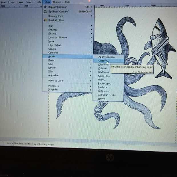 - Luego ir a filtros. Vaya a artística luego de dibujos animados y seleccione. A mí esto da efecto de dibujo a un poco más audaz.