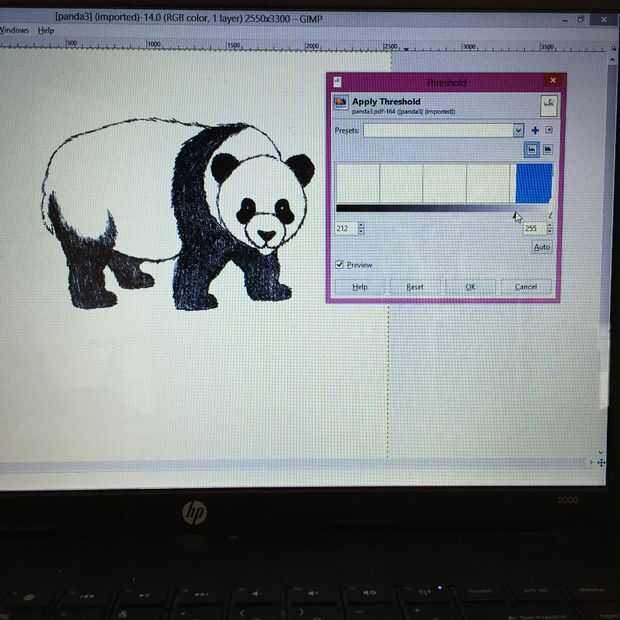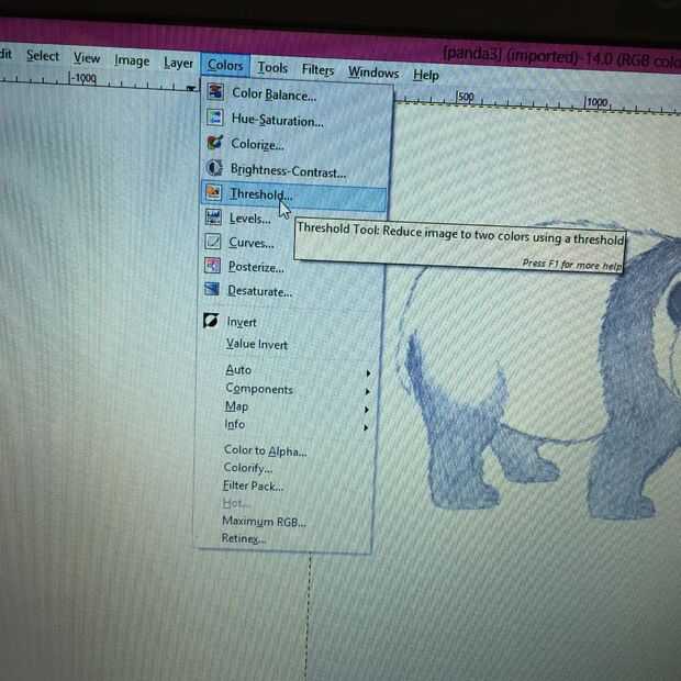 Luego ir a colores y seleccionar el umbral. Ajustar hasta que el bosquejo parece audaz. Quería que el panda sea mucho más oscuro así que esta herramienta era todo lo que necesitaba.