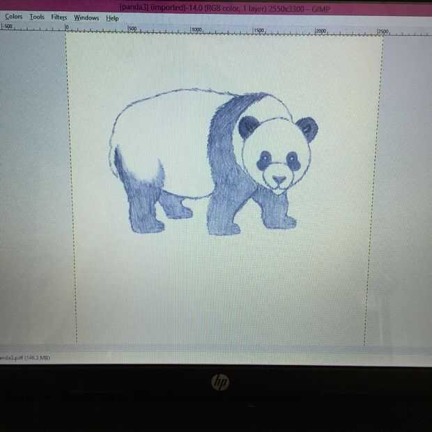 A continuación, abra el dibujo en gimp. Ajuste el tamaño y pixeles.