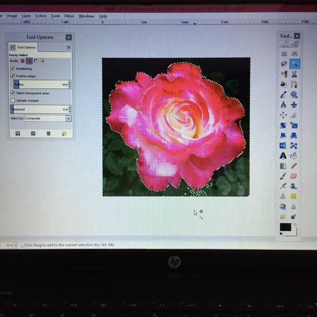 - Una vez que los bordes están tan cercanos como usted puede conseguir puede mantener pulsada la tecla Mayús y tirar los bordes hacia el interior borde de la flor. Esto hará que la frontera en el borde interno y reducir los bordes pixelados.