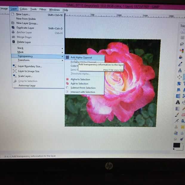 - Ahora agregas un fondo translúcido. Ir a capas, entonces la transparencia, a continuación, seleccione Agregar un canal.