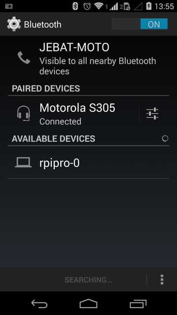 Se utiliza un teléfono con Android corriendo KitKat para buscar dispositivos Bluetooth cercanos. La frambuesa se espera que aparezca en la lista de los teléfonos Android de dispositivos disponibles