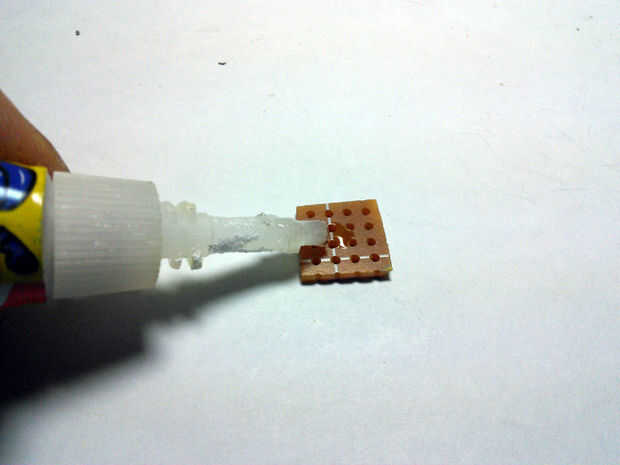 Caer una pequeña cantidad de pegamento, para mantener el chip en su lugar.