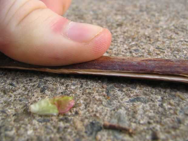 La madera es deliciosamente fácil de quitar. Comenzando en el extremo grueso de una de las mitades, quite la sección de madera pulgadas de largo. Para evitar la descamación, tire de un extremo, luego el otro, hasta que se quite la tira. Deseche estos. (Usted notará que cada mitad se divide nuevamente en dos trimestres, esto es natural).