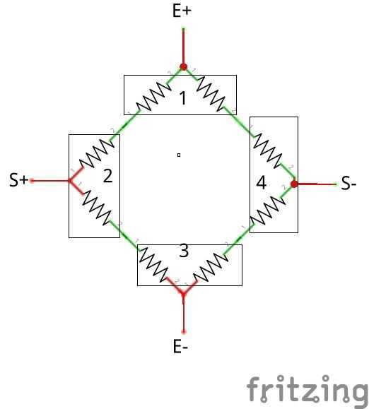 Enteré de que mi celda de carga fue conectado en una configuración de puente en la imagen:
