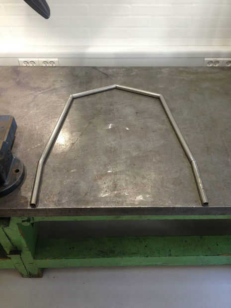 Era muy difícil de soldar en los grados exactos necesarios para que se ajuste (esto es probablemente porque esto era uno de la primera vez nunca soldado con autógena). Por lo tanto era necesario doblar las estructuras soldadas gable para contrarrestar mis errores de soldadura/corte. Esto se hizo suavemente por martilleo en los puntos.