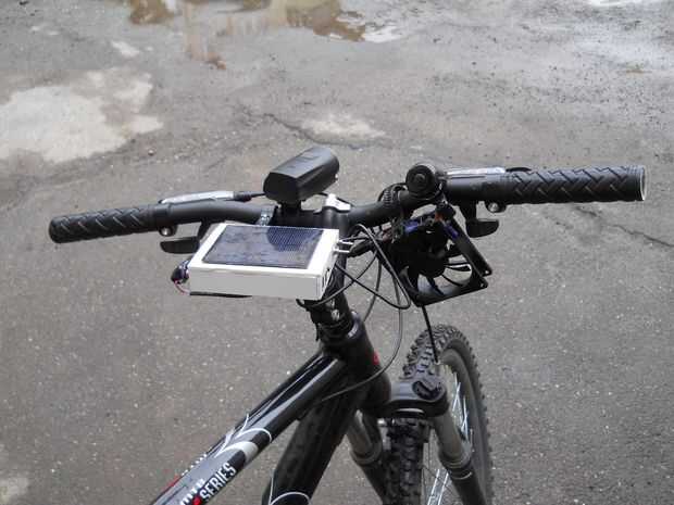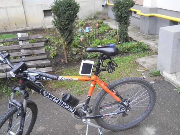 Un destornillador y equipar sus nuevos gadgets en su bicicleta. Me siuted myturbine en el volante y el Banco de la energía debajo de mi asiento o también en la rueda. Si todo encaja perfecto terminado y puede ir en bicicleta.