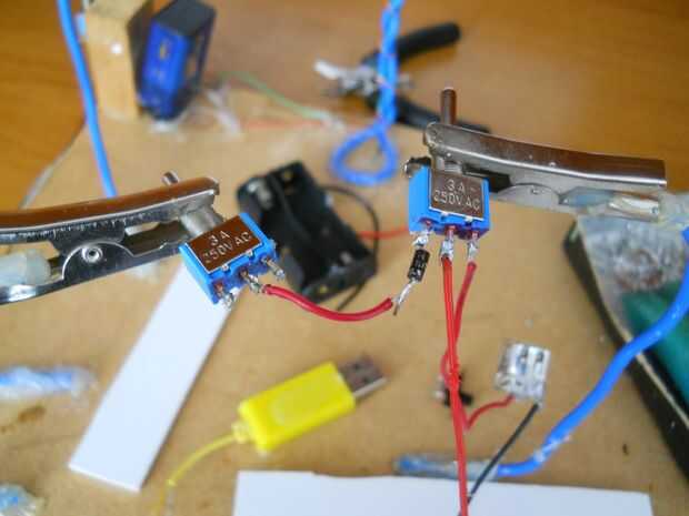 Ahora usted tendrá que soldar todo entre sí. Primero agregue el portapilas AA entonces la batería de 3,7 voltios. Entonces el módulo de intensificación a la batería de la soldadura, pero añadir un interruptor entre la pila y el paso por el circuito. Sigue las imágenes y tenga cuidado! Nunca corta el circuito. Estas baterías de ion de litio pueden ocasionar incendio, ya que tiene una corriente muy alta.