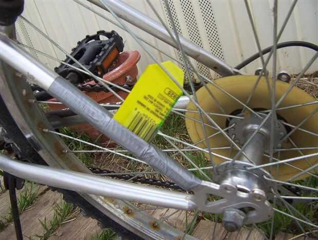 Cometí un error al hacerlo. Asegúrese de que la pieza de plástico es hacia más abajo, no hacia arriba como él está en las fotos. De lo contrario hará un sonido agudo muy gay porque es ajustar demasiado hacia atrás y golpear los radios de.