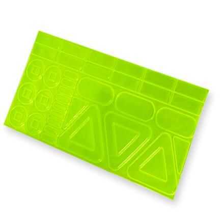 Usted puede conseguir material reflectante o de una tienda de bicicletas o incluso puedes ir al Dpto. de la carretera y pedir algunos desechos. Las señales de tráfico utilizar material muy reflectante y el Condado generalmente tiene retazos de lo que se mezcle. Usted puede comprar tiras de cinta reflectante o etiquetas de tiendas de la bicicleta. La imagen de abajo es Nathan Cycling etiquetas adhesivos para poner en su casco o bicicleta. Es alrededor de 5 dólares de la mayoría de tiendas de bicicletas
