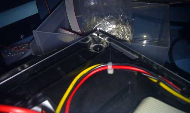 La Xbox tiene un hueco perfecto para correr que los cables fuera del blindaje metal fueron muy que hicimos nuestro primer corte.