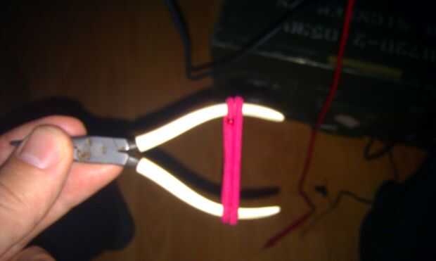 Si usted tiene un tiempo duro para soldar los cables juntos, añadiendo una banda de pelo a los alicates hará un gran DIY con abrazadera.