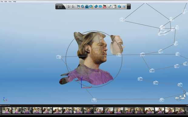 123D catch prefiere que la iluminación es uniforme y requiere que nada se mueve. Tomamos una serie de fotos alrededor de nosotros mismos para solucionar nuestros rostros. Mejor es la distancia angular entre 5 a 10 grados. 20 o 30 fotos trabajaban aquí. Tendrás que experimentar cosas como cabellos y barbas afectará el modelo.