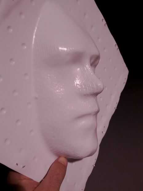 El plástico se calienta hasta que es suave. He utilizado un horno tostador ya que no tengo horno en mi laboratorio. A pocos minutos a 350F funcionaron bien. El plástico debe ser muy suave. Encontré que ligeramente más grueso plástico funcionaba mejor. Parece ser que el plástico delgado se refresca apagado muy rápidamente.