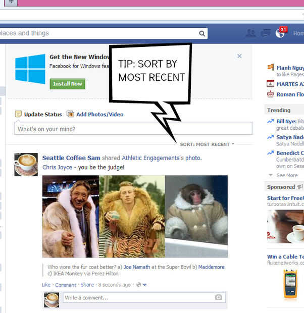 Usted puede ordenar por 'Más recientes' o 'Historias superiores'. Seleccione 'Más recientes'.