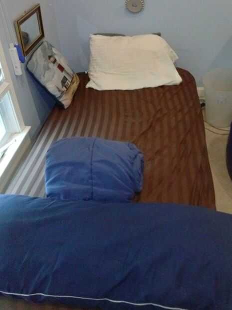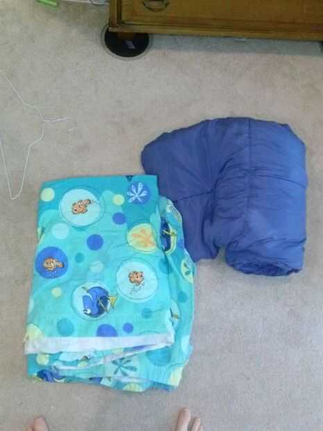 solía tener cubiertas de Nemo:-P. He decidido que es tiempo de cambiar. Entonces decidí que todavía no tengo suficiente espacio. así que desmantelaron el marco de la cama para que mi cama se pueda apoyar contra la pared durante el día. entonces puse mis almohadas en un cajón y mi consolador por lo que puedo poner la cama, puso las almohadas y Desenrolle el consolador muy rápido.
