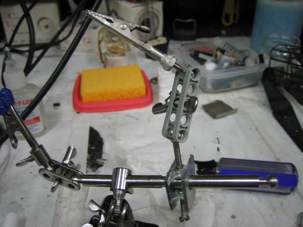 También, usted querrá poner cinta o tubo termo retráctil, o alambre de aislamiento alrededor de los dientes de cocodrilo que no muerden en los cables con que está trabajando.