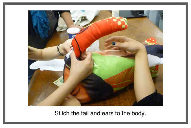 Coser todos los orificios. Conecte las orejas donde se la cabeza y la cola al otro extremo del cuerpo.