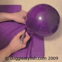 Alrededor del cuello el agujero es el lugar más importante para la colocación del balón. que desea buscar incluso y no tener ningún espacio vacío. Coloque un soplado hacia arriba globo donde usted quiere y haga una marca con el lápiz de la marca. Usé tres globos a cada lado de los orificios del cuello.