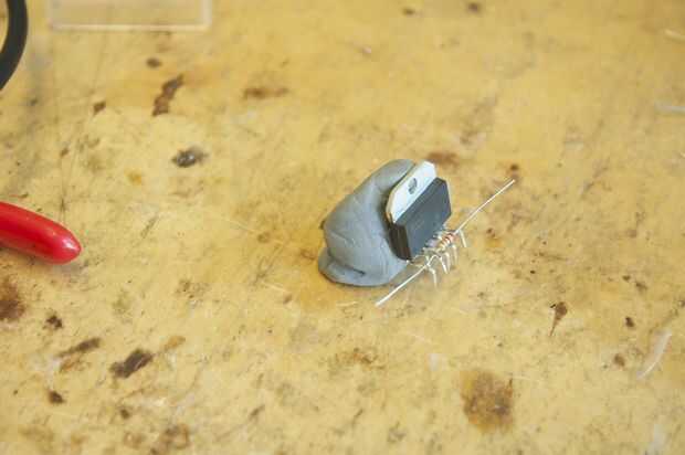 - Soldar un trozo de alambre de cobre sólido kern a los pines 1 y 5 (Foto 9). Dobló los pernos en un arco pequeño para que el alambre de cobre no ruede lejos demasiado fácilmente. Deje que el cable sobresalga.