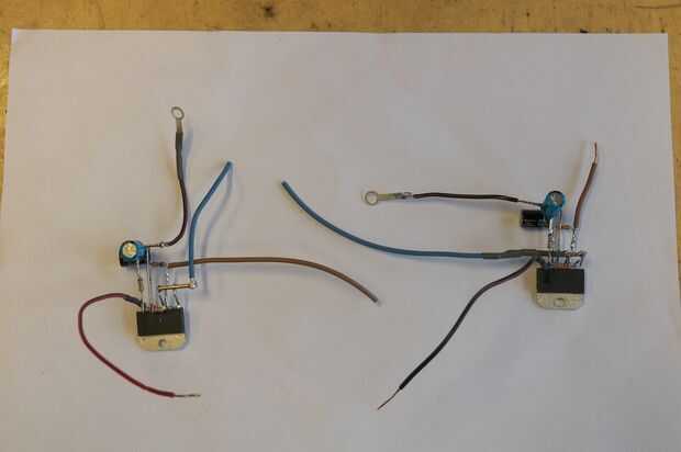 - Por último, soldar los cables a + V, -V y tierra a los pines y 1 y 5, pin 4 y pin plus-lo de la tapa de 100uF (fotos 9 y 10).