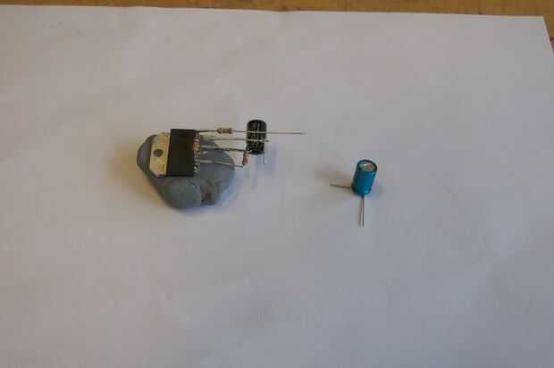 - La soldadura de plomo menos de la PAC de 47uF a plus-lo de la tapa de 100uF. Conecte el plus-de la tapa 47 del uF a la resistencia de 680 Ohm (Foto 8).