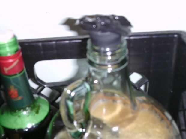La solución habitual es instalar un lleno de agua grifo/bolsa de aire en la parte superior de la vasija de fermentación. La esclusa permite CO2 hacia fuera en forma de burbujas pero mantiene el aire entren.